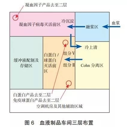 血液制品的原料是血漿,血液制品就是從原料血漿中分離純化出來的多種特殊功能性蛋白。其中含量較多的是人血白蛋白(HA)、球蛋白(IgG),其余為微量蛋白。血液制品的生產(chǎn)工藝流程就是通過各種分離純化方法將上述蛋白從血漿中提取出來。從上文中我們了解到血液制品車間今后的一個發(fā)展趨勢就是規(guī)模更大,產(chǎn)品種類更豐富,為了更好的規(guī)劃一個血液制品車間的布置,我們需要了解血液制品各個生產(chǎn)步驟及其特點: 融漿/冷沉淀分離/Cohn分離/凝血因子類產(chǎn)品生產(chǎn)工藝/免疫球蛋白類產(chǎn)品生產(chǎn)工藝/白蛋白生產(chǎn)工藝輔助區(qū)域/緩沖液配制/低溫空調(diào)系統(tǒng)/低溫酒精系統(tǒng)及酒精回收/低溫冷媒系統(tǒng)/注射用水系統(tǒng)/在線清洗/血液制品工藝布置。
